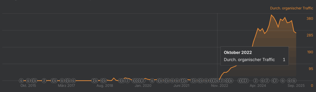 Dadurch war der Einstieg vergleichsweise einfach und wir mussten beim Linkaufbau keine großen Maßnahmen ergreifen, um bei Google sichtbar zu werden.